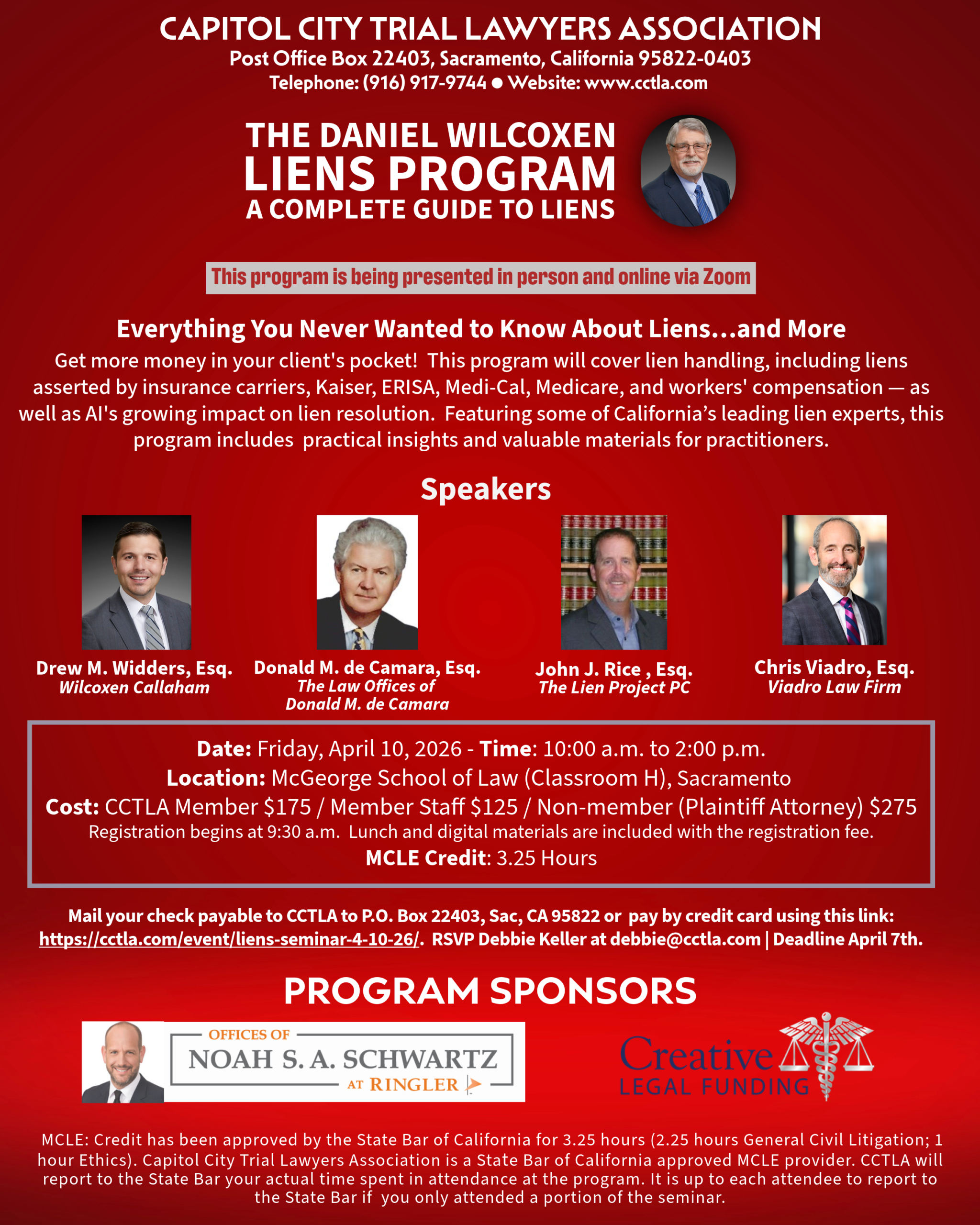 Join us in person or attend remotely—this program is offered in both formats. PROGRAM SPONSORS Offices of Noah S. A. Schwartz @ Ringler Creative Legal Funding